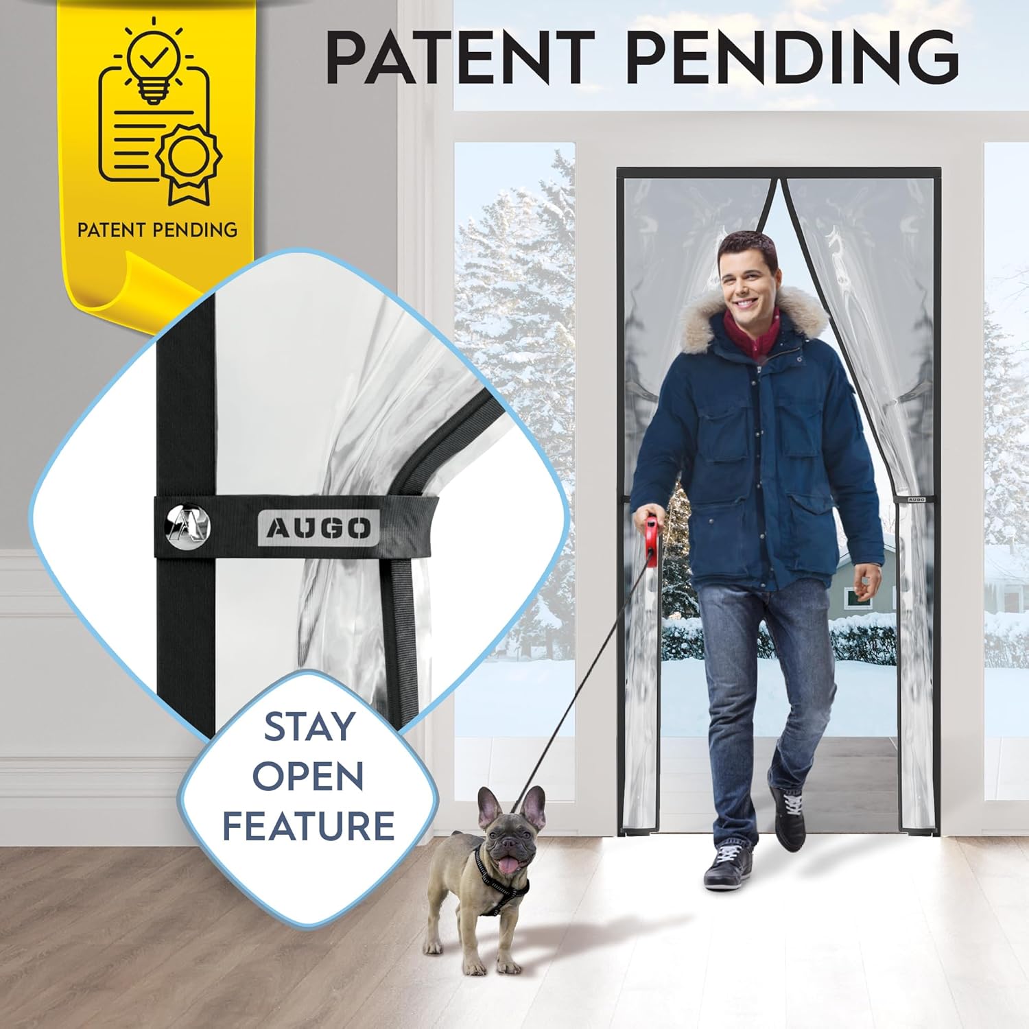 Transparent EVA Door Cover for Winter- Keeps Warm Air in and Cold Air Out – Home Winterizing Products – Patent Pending Keep Open Feature